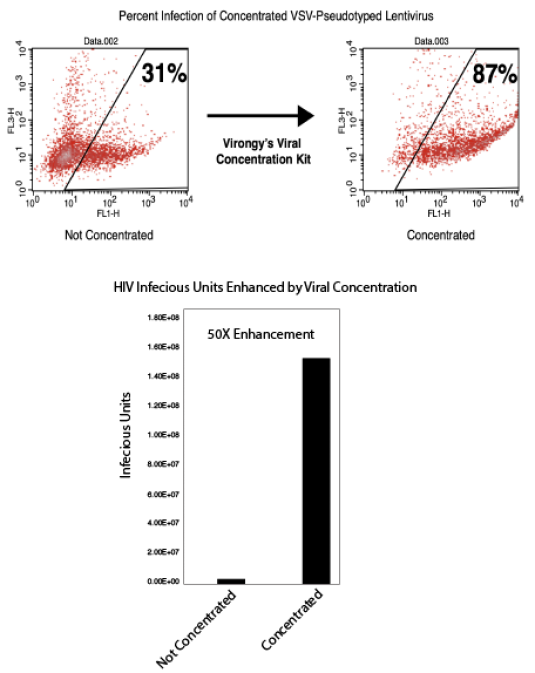 HIV infectious units were quantified by Rev-A3R5.7-GFP cells following concentration with the low-speed viral concentration kit.