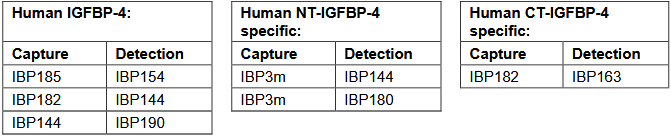 Detection of human IGFBP-4, NT-IGFBP-4, and CT-IGFBP-4. MAbs are working in direct ELISA