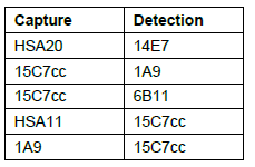 Recommended combinations for sandwich immunoassay, suitable for the quantitative detection of human serum albumin in serum and urine: