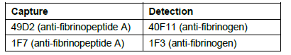 For specific fibrinogen detection in sandwich ELISA we recommend using anti-fibrinopeptide A MAbs for coating and anti-fibrinogen MAbs for conjugation.