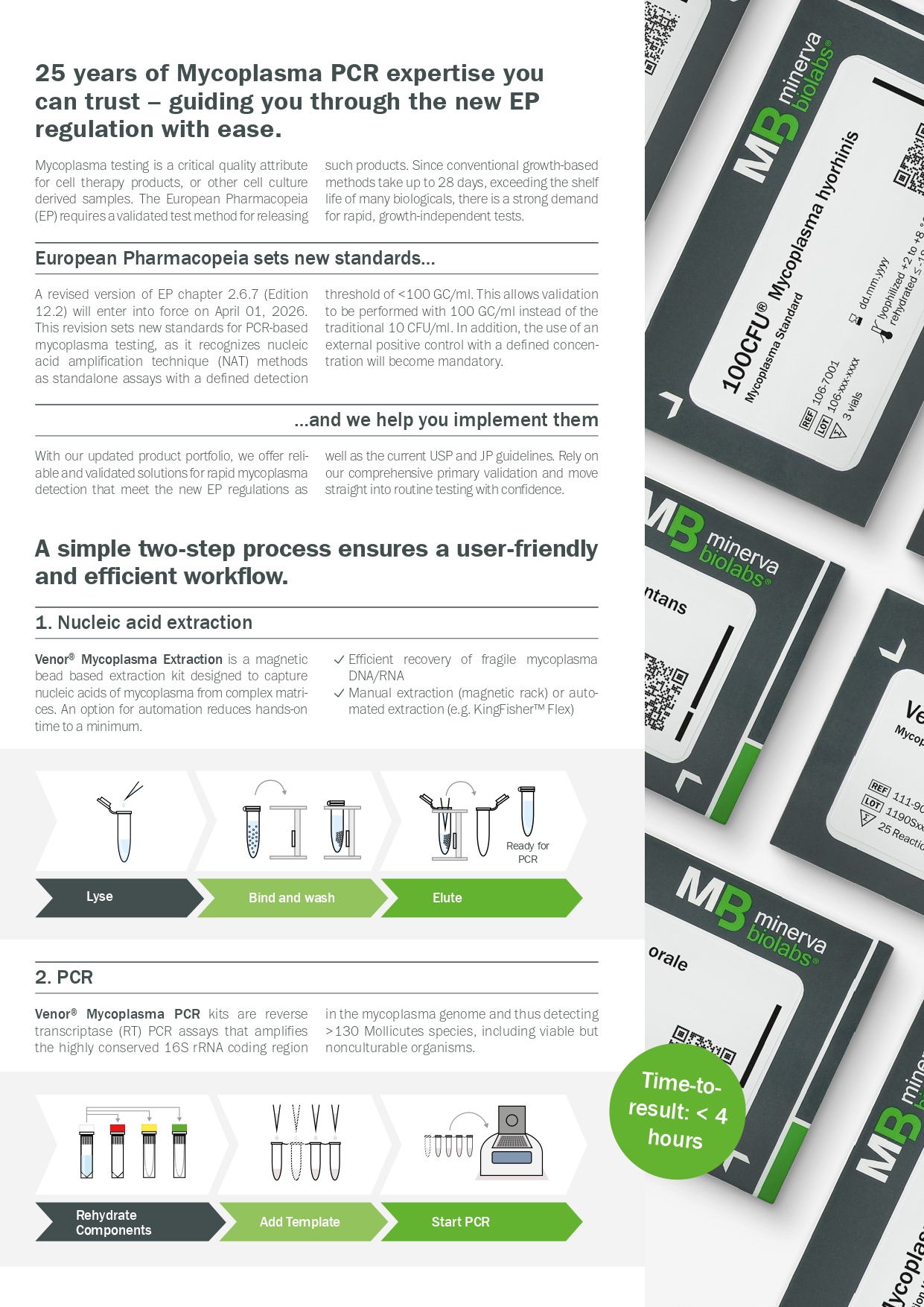 Minerva Biolabs는 세포배양 및 바이오의약품에서의 mycoplasma, bacteria, virus를 검출/오염방지/제거 등 컨트롤 할 수 있는