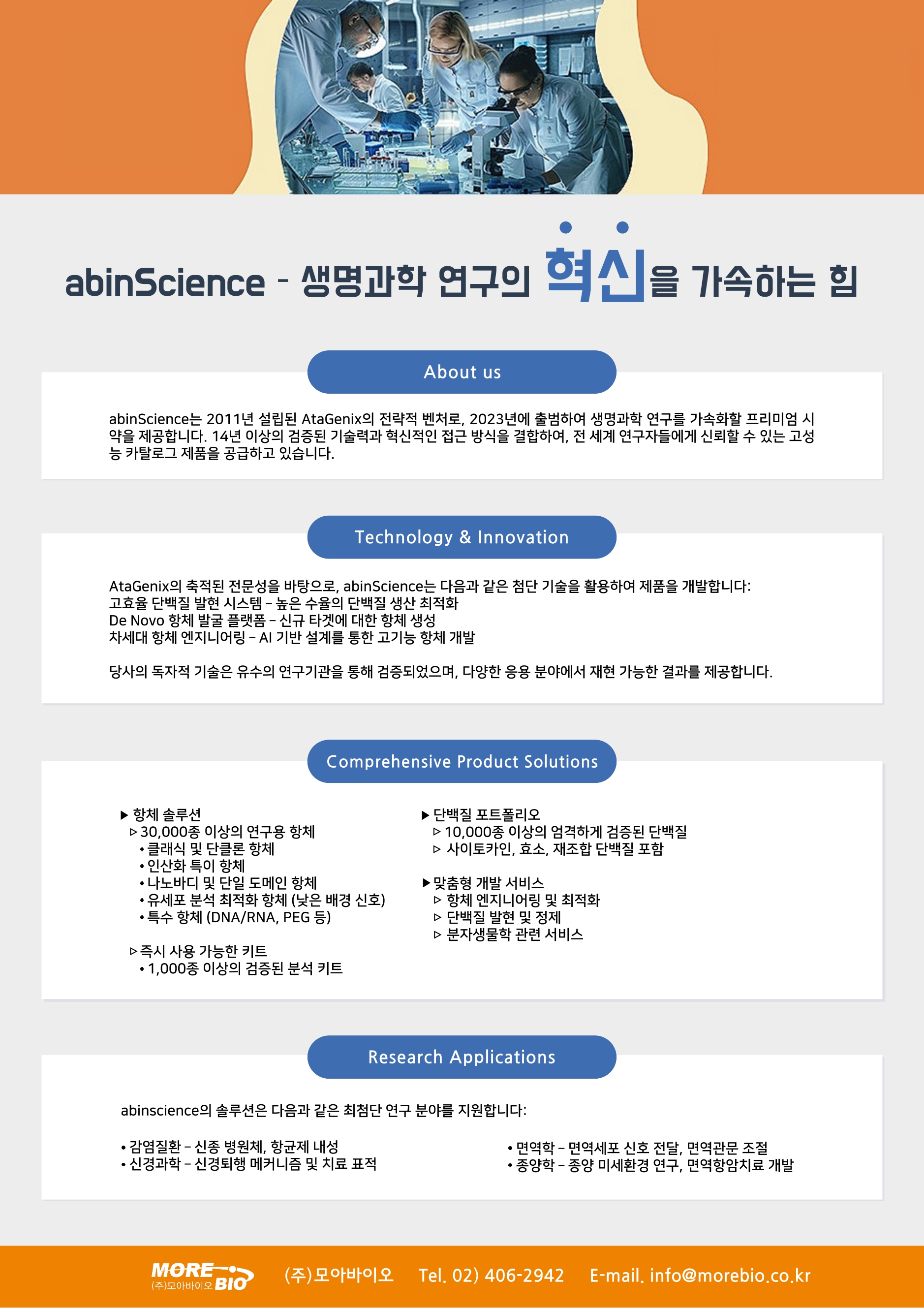 abinScience - Exclusive Distributor in South Korea "Morebio" 한국 독점 대리점 "모아바이오"
