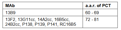 MAbs 13G11cc, 14A2cc, 16B5cc, 24B2cc and 13F2 can be used for procalcitonin detection in Western blotting after SDS-electrophoresis in reducing conditions