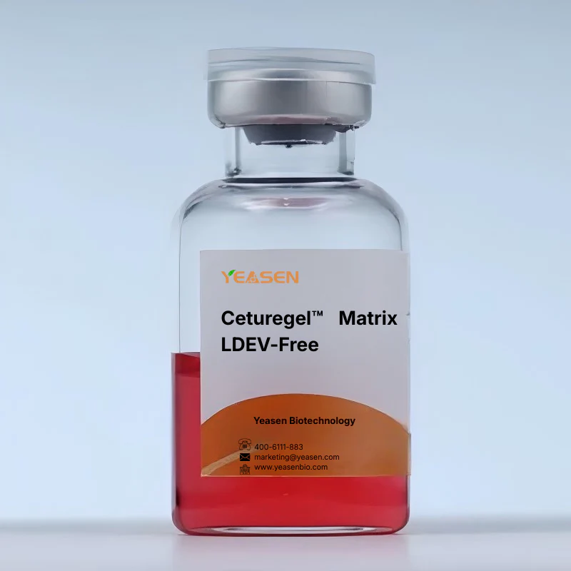 Ceturegel™ Matrix LDEV-Free Matrix is a soluble basement membrane preparation extracted from EHS mouse tumors rich in extracellular matrix proteins. Its main components are laminin, type IV collagen, heparan sulfate proteoglycan (HSPG), and nestin as well as growth factors such as TGF-beta, EGF, IGF, FGF, tissue plasminogen activator, and other growth factors contained in EHS tumors. At room temperature, it aggregates to form a biologically active three-dimensional matrix, which simulates the structure, composition, physical properties, and functions of the cell basement membrane in vivo, which is beneficial to the culture and differentiation of cells in vitro. It can be used for studies of cell morphology, biochemical function, migration, invasion, and gene expression.