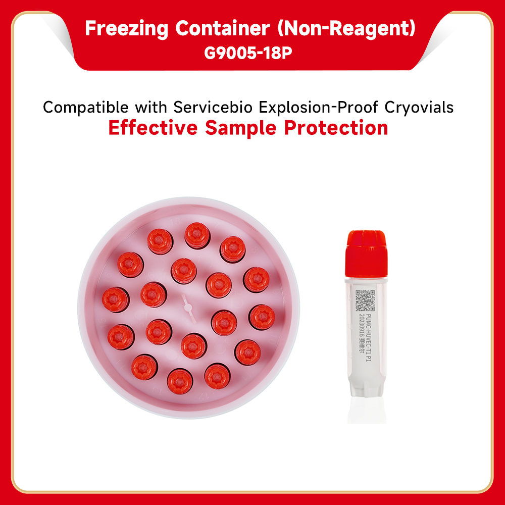 Servicebio 초저온 냉동고(SWE-86L718) 및 2 mL Servicebio 방폭 크라이오바이알(CV-3)과 호환되어 보다 안전하고 효율적인 보존을 지원하며, 해동 후 높은 세포 생존율을 보장.