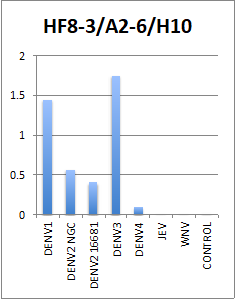 DENV E glycoprotein specific mouse monoclonal antibody. This monoclonal antibody reacts with a conformational epitope present in DENV1 and 3 E.