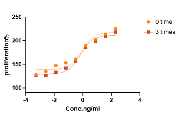 Figure 4. Results of the cell viability experiment show that GMP-grade Human IL-3 protein remains stable after three repeated freeze-thaw cycles.