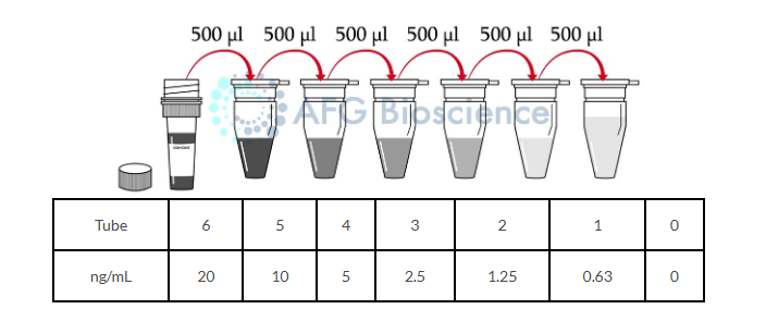 | ng/mL | 20 | 10 | 5 | 2.5 | 1.25 | 0.63 | 0 |