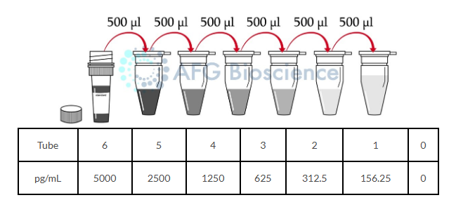 Prepare 7 tubes with 0.5 ml of Standard Diluent Buffer in each and create a series of dilutions using the Diluted Standard. Remember to thoroughly mix each tube before transferring the solution to the next tube by pipetting the solution up and down several times. Set up 7 points of Diluted Standard, decreasing the concentration each time, and use a Blank with no standard for comparison. It's important to use a new Standard Solution for each experiment to ensure accurate results. When diluting the Standard from high concentration to low concentration, replace the pipette tip for each dilution. Additionally, make sure not to transfer solution into the Blank tube from the previous one.