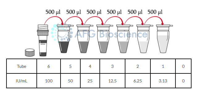 Prepare 7 tubes with 0.5 ml of Standard Diluent Buffer in each and create a series of dilutions using the Diluted Standard. Remember to thoroughly mix each tube before transferring the solution to the next tube by pipetting the solution up and down several times. Set up 7 points of Diluted Standard, decreasing the concentration each time, and use a Blank with no standard for comparison. It's important to use a new Standard Solution for each experiment to ensure accurate results. When diluting the Standard from high concentration to low concentration, replace the pipette tip for each dilution. Additionally, make sure not to transfer solution into the Blank tube from the previous one.