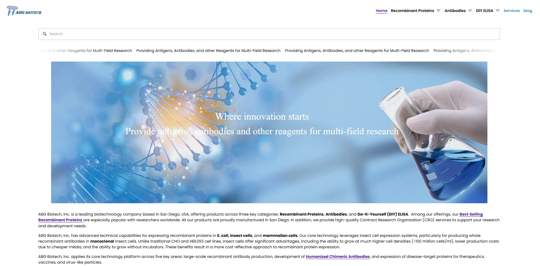 ABG Biotech는 미국 샌디에이고에 본사를 둔 바이오테크 기업으로, Recombinant Proteins, Antibodies, DIY ELISA 제품을 제공합니다.